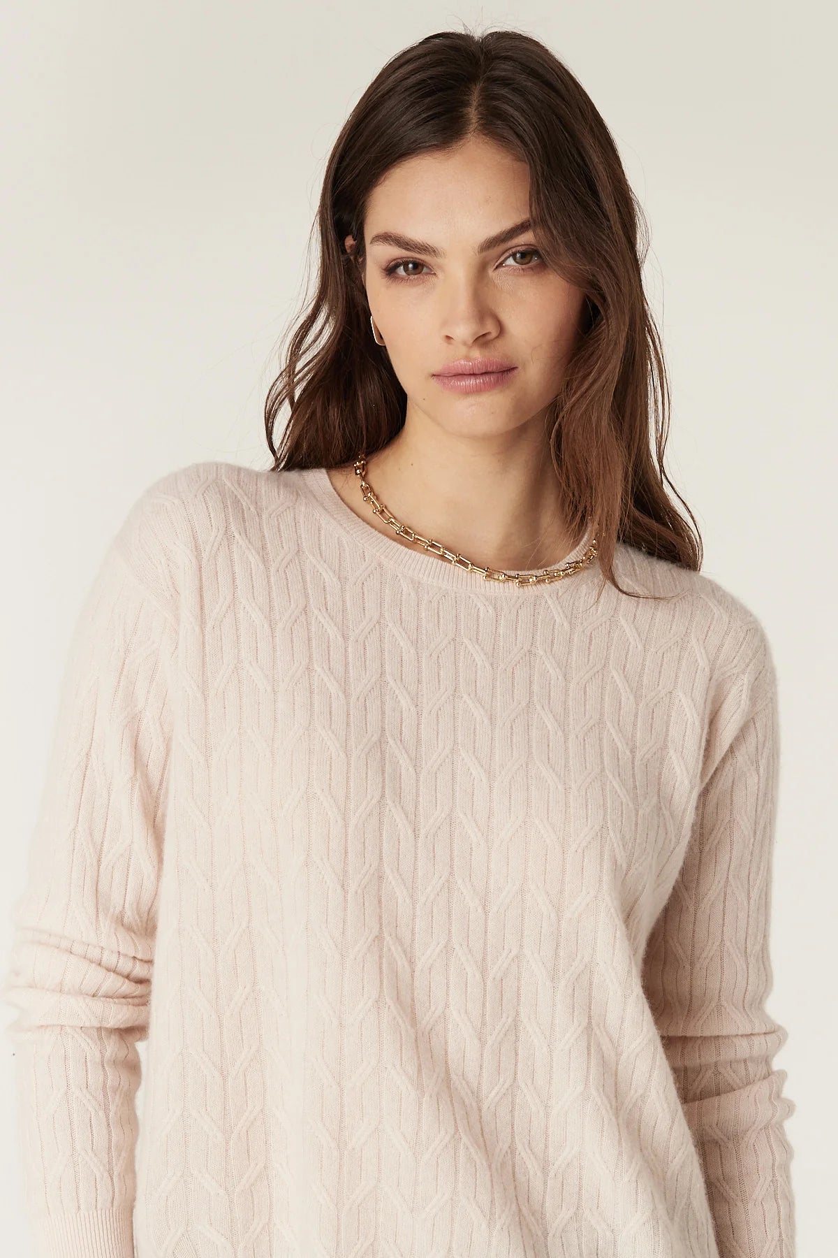 Cable Cashwool Cable Crew Jumper - Blush