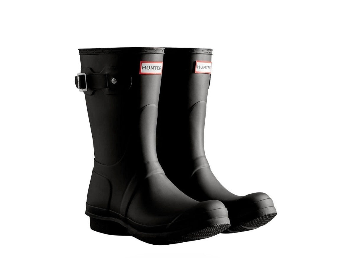 Crafted from FSC®-certified natural rubber from forests independently audited to Forest Stewardship Council® standards. The Hunter Original Short Boot has now been updated with the iconic Hunter tri-colour logo on the backstrap. Perfect for wet-weather conditions, this natural rubber rain boot is a shorter version of the iconic Hunter Original Tall Boot. Each black boot is handcrafted and assembled over three days before being vulcanised for superior protection. The Hunter Original tread pattern and comfortable recycled polyester linings complete the design.