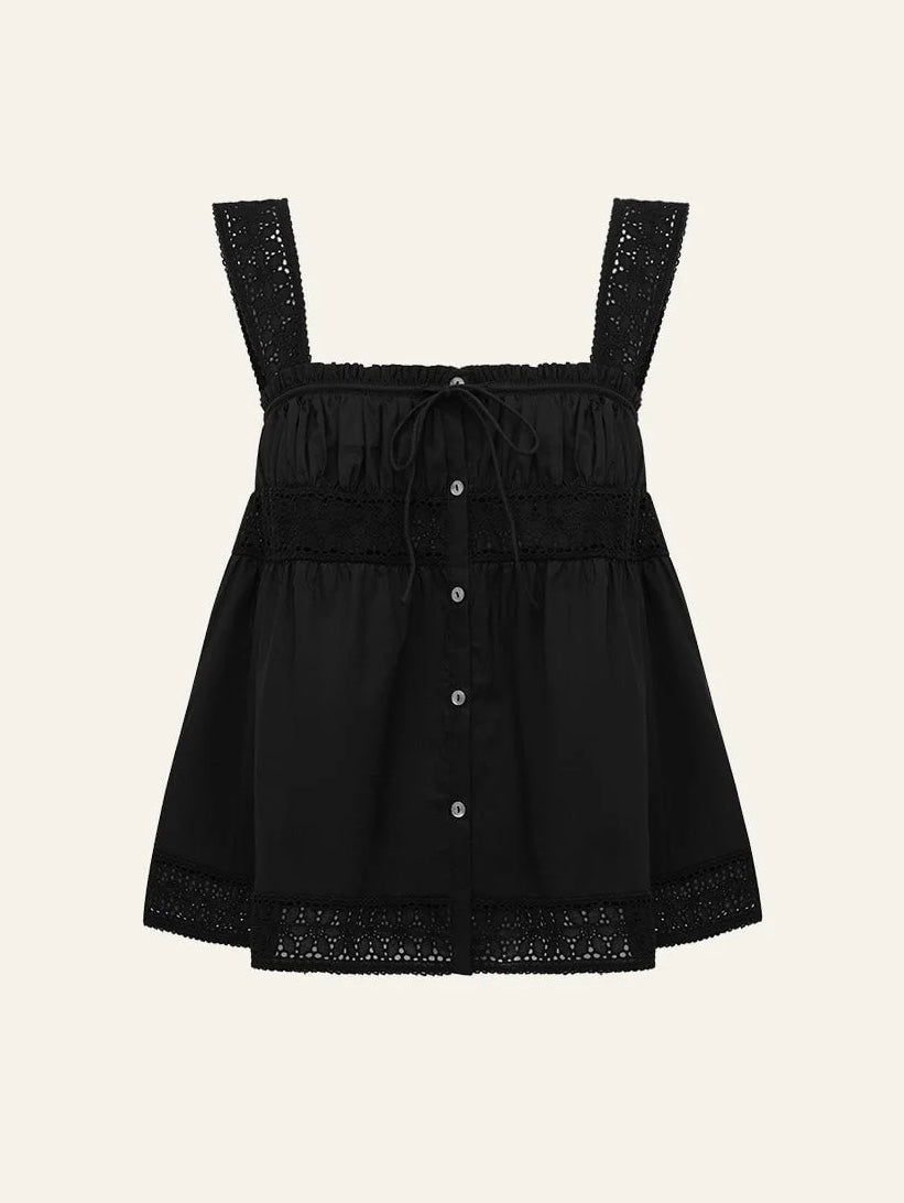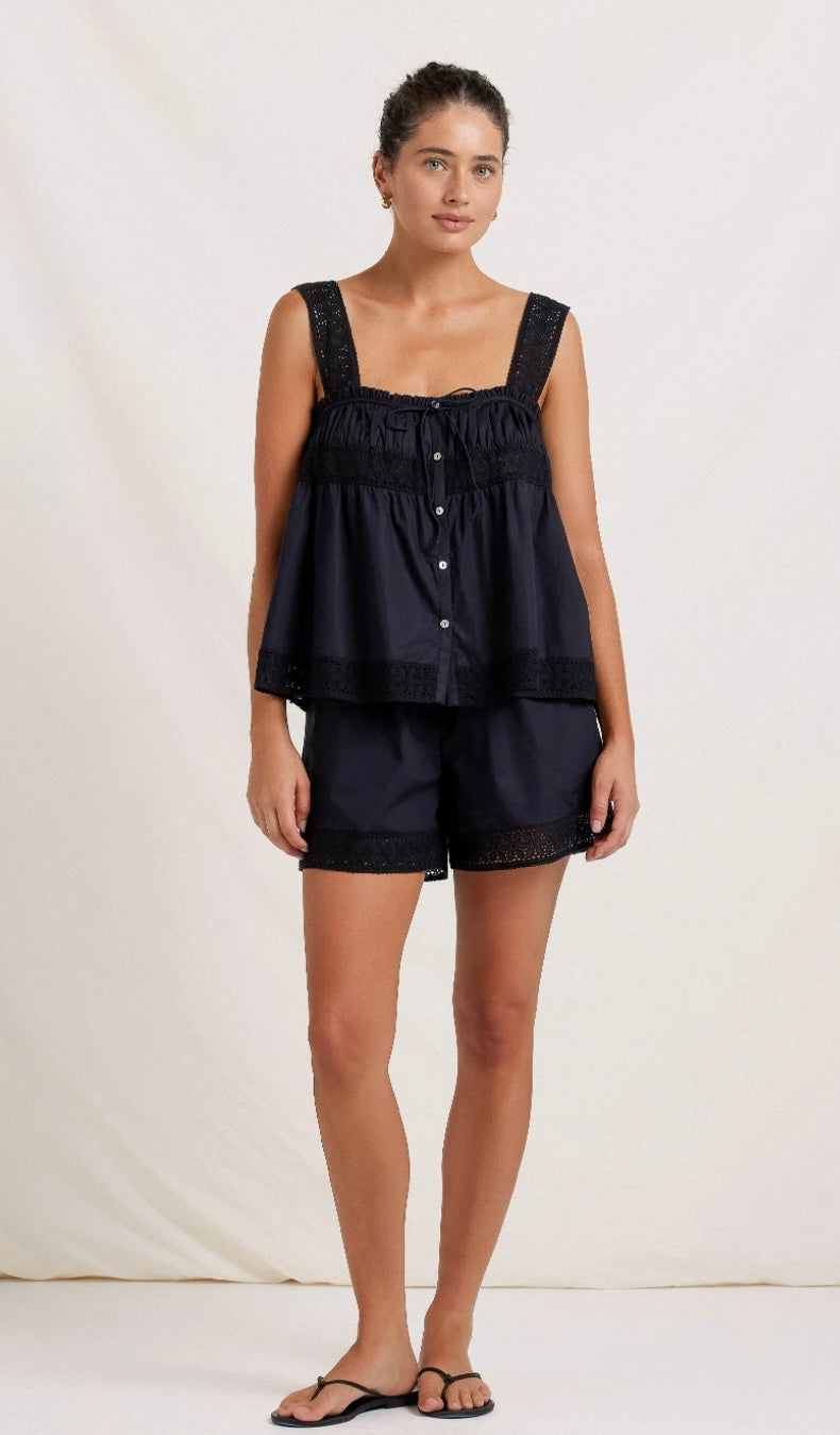 Introducing our Summer Cami, a breezy staple for the modern romantic. Crafted from soft, breathable cotton, delicate eyelet embroidery frames a square neckline in a floaty silhouette. Featuring an adjustable under bust and functional buttons through the centre front, this piece is designed to be worn separately in your forever wardrobe, or styled with our matching Summer Short for a chic summer look.