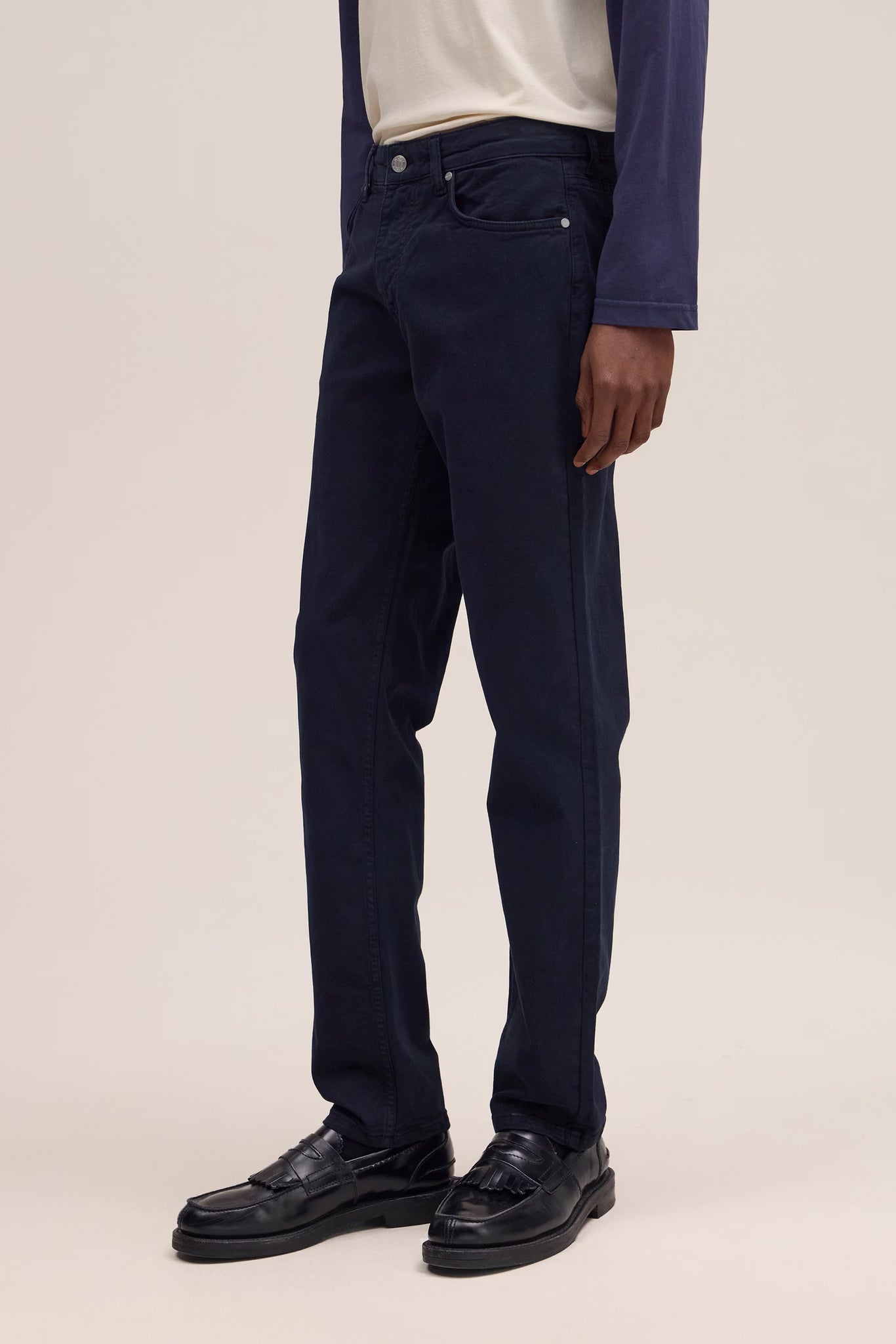 Slim-fitted trousers crafted from a very soft 305 g/m2 organic cotton with a slight touch of stretch for comfort. Designed with five-pocket jeans details and logo rivets.