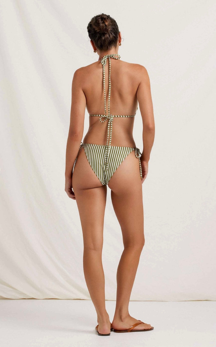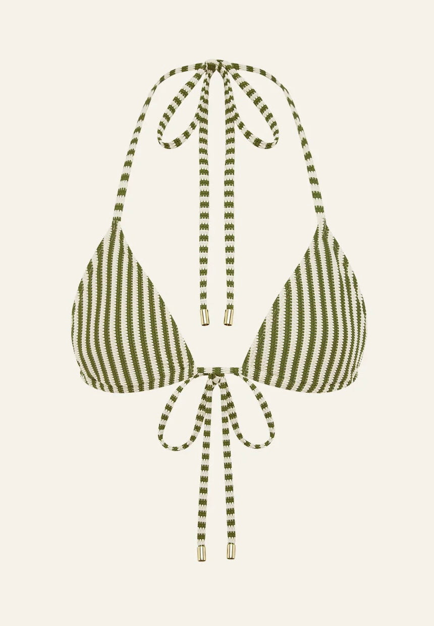 Our Essential String Tri is your goto summer essential, designed for effortless wear. Achieve your perfect fit with fully adjustable straps and cups that slide along under bust ties. Featuring soft removeable padding and finished with premium golden toggles.