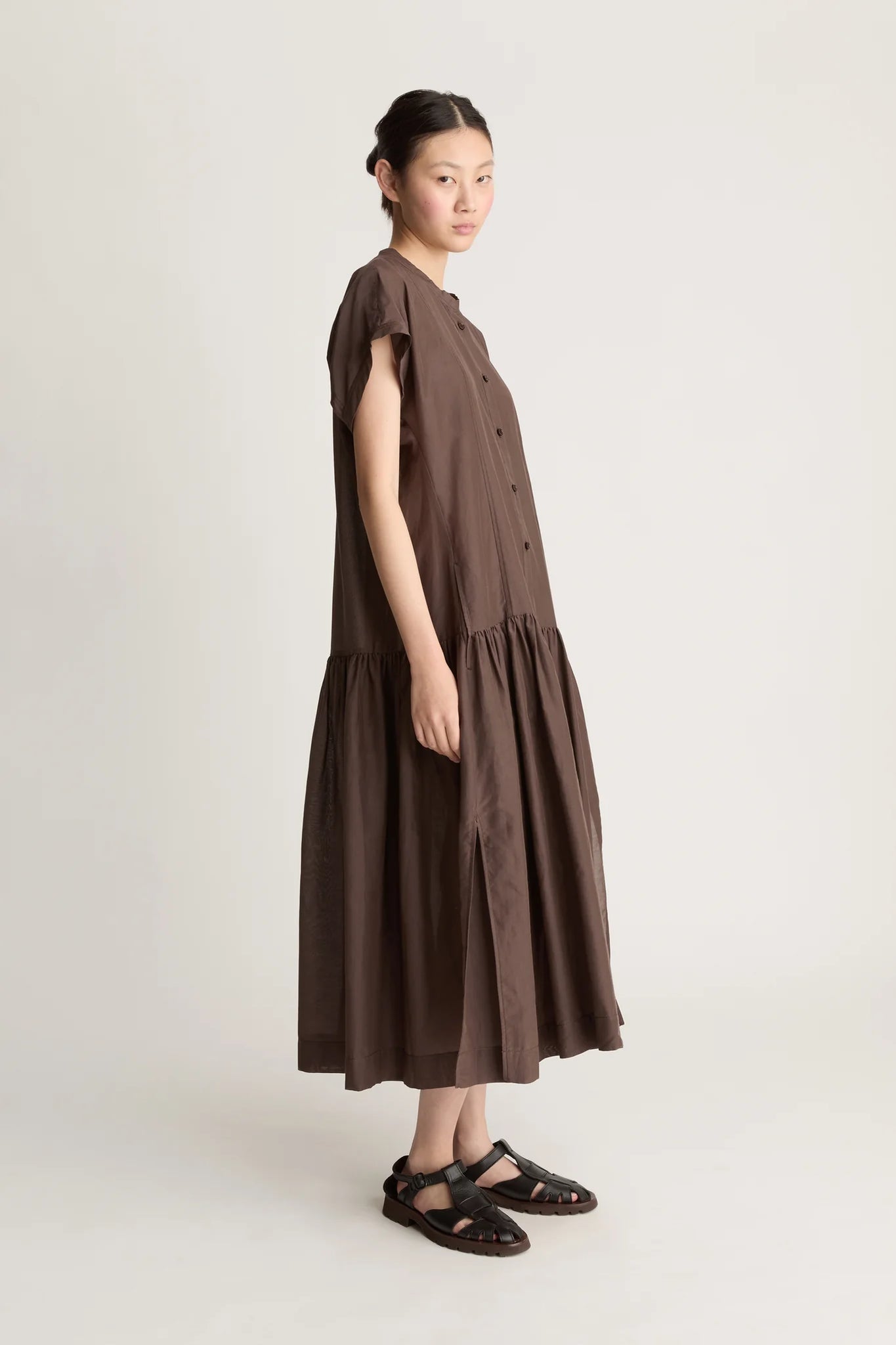 Round neckline with button through front.