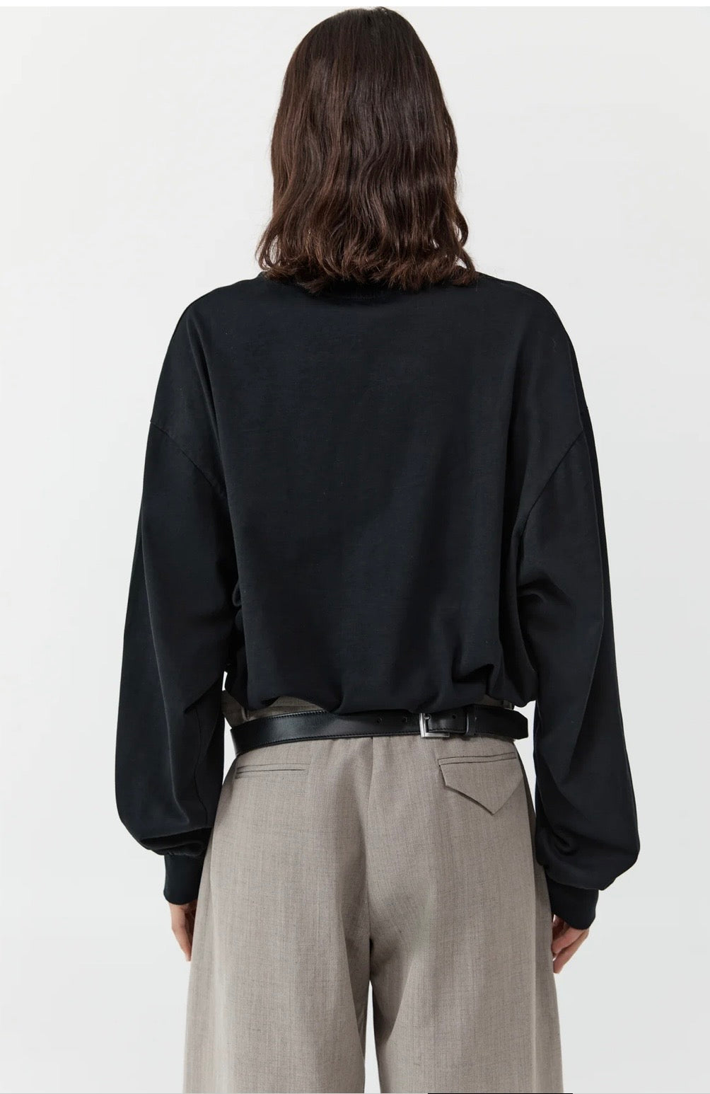 Cut from 100% cotton, the Drawstring Long Sleeve Top is designed to layer seamlessly. A clean crew neckline is finished with ribbed detailing, echoed at the cuffs. Dropped shoulders and a boxy silhouette create a relaxed feel, while an adjustable drawcord at the hem allows the shape to be cinched or worn loose.
