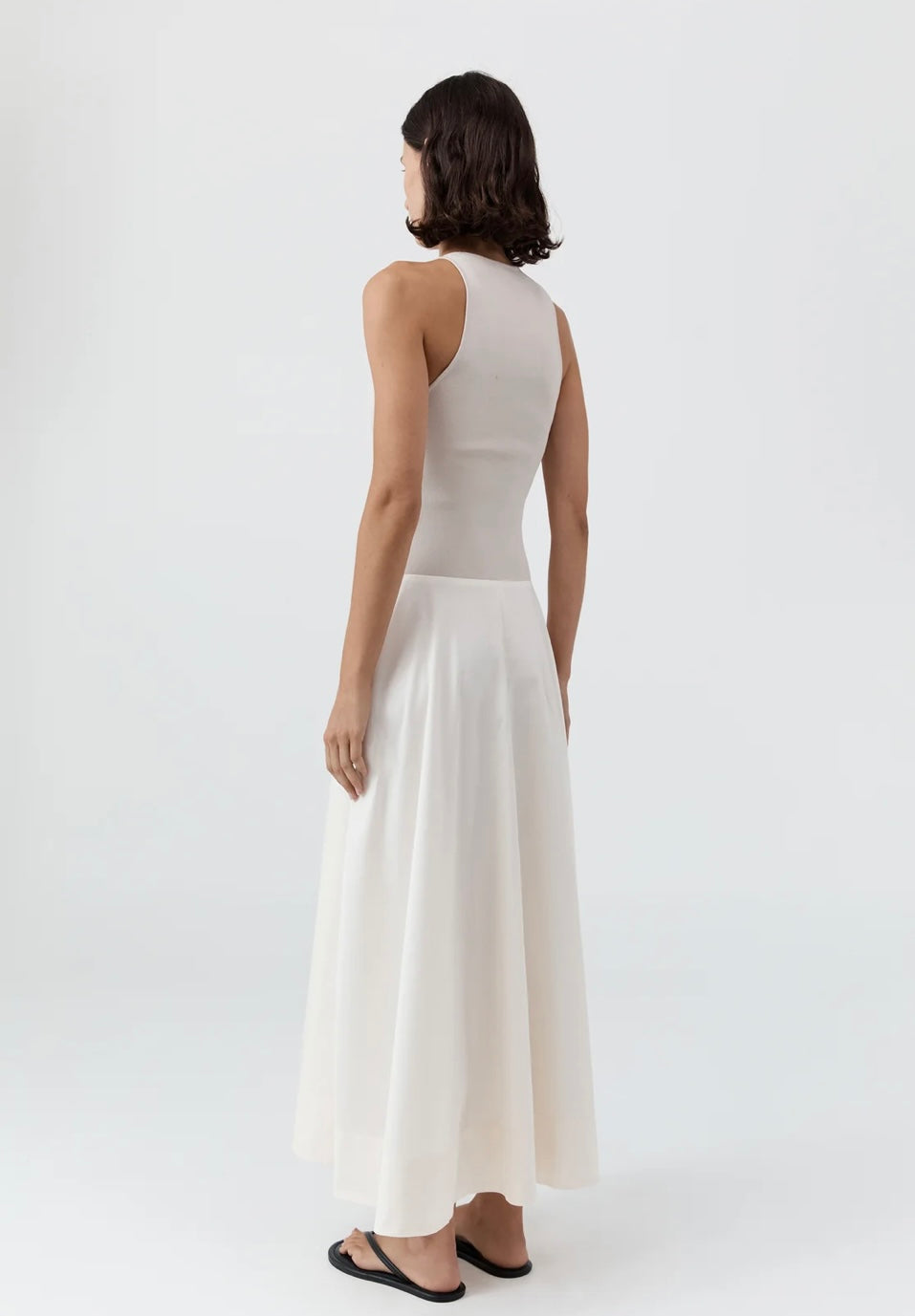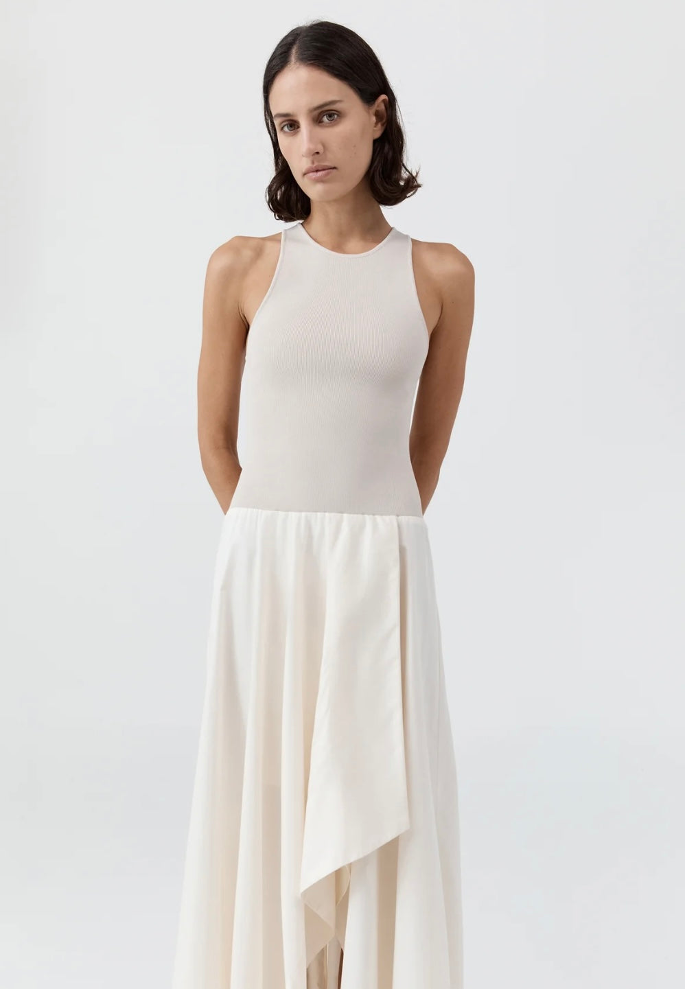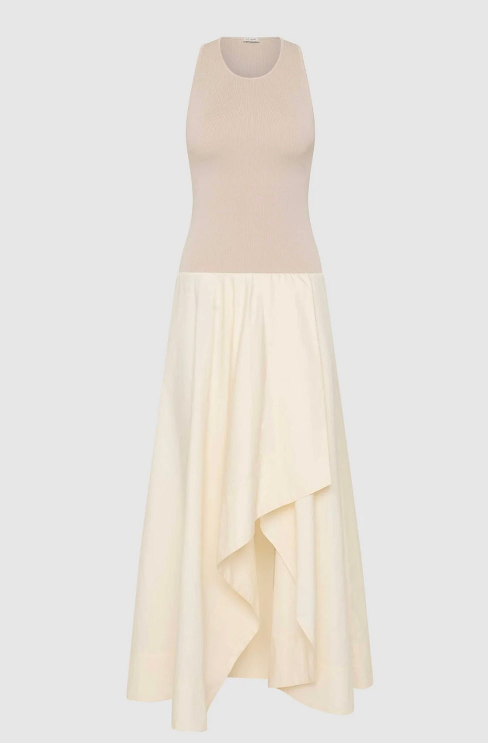 St Agni Knit Bodice Asymmetrical Dress Ecru