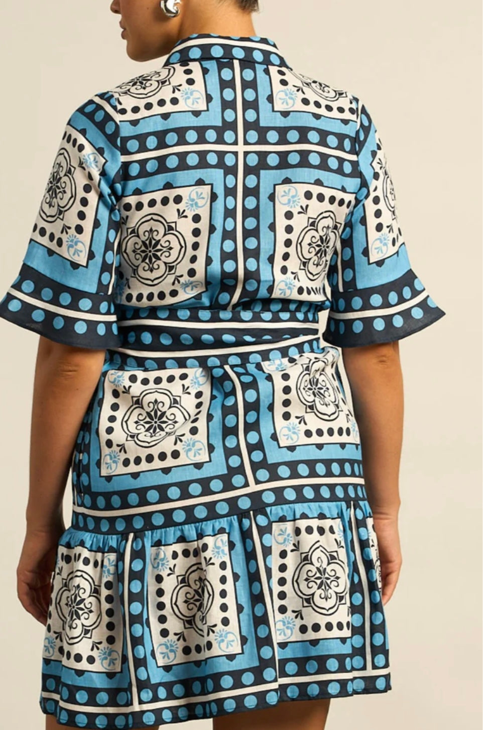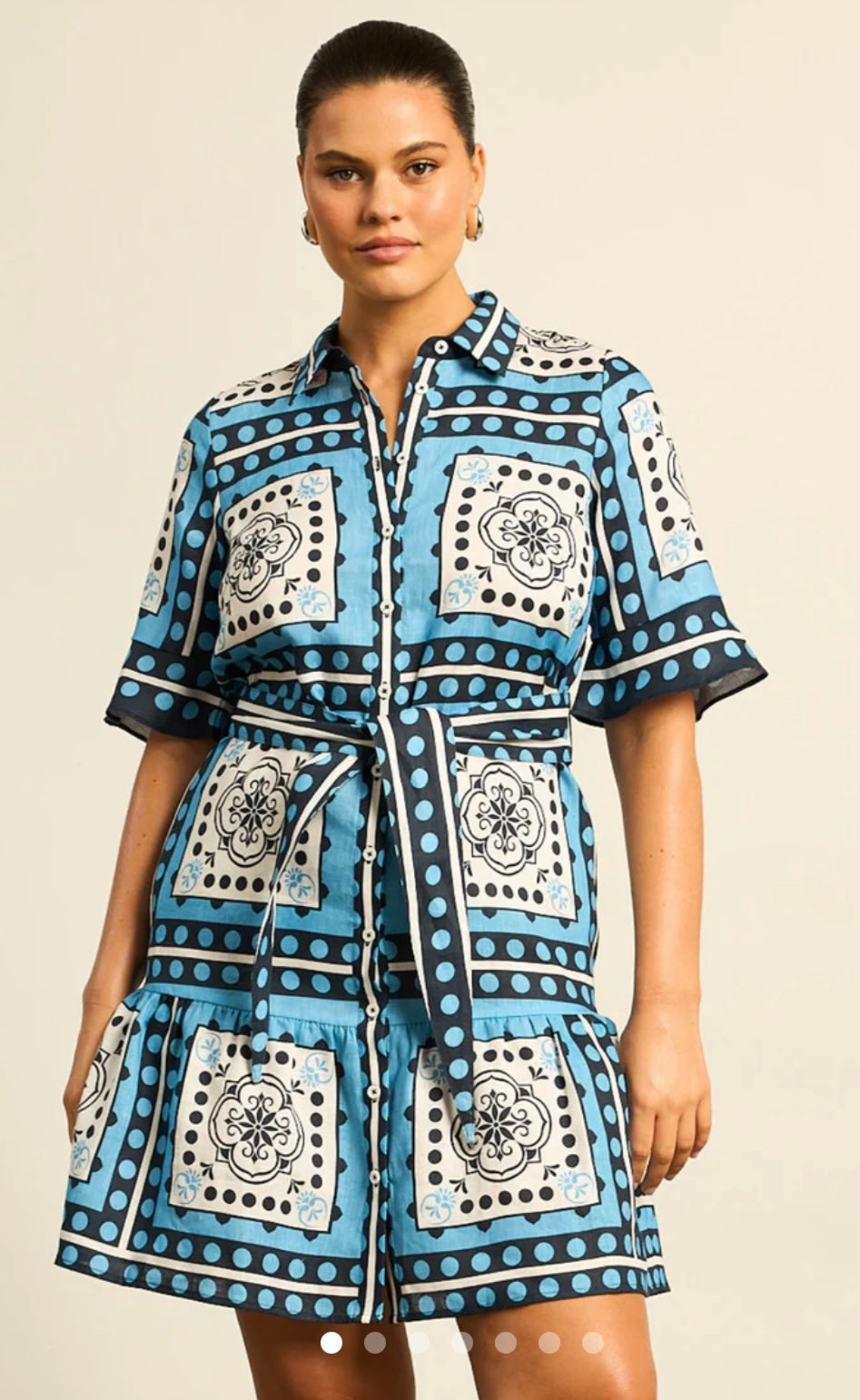 the submerge dress offers an easy-fitting silhouette finished with a tiered hem and softly fluted cuffs. a wide self-tie belt shapes the waist, while the distinguished scarf print, inspired by travels abroad, brings vibrance and individuality. designed for versatility, it’s a piece as suited to everyday wear as it is to resort escapes.