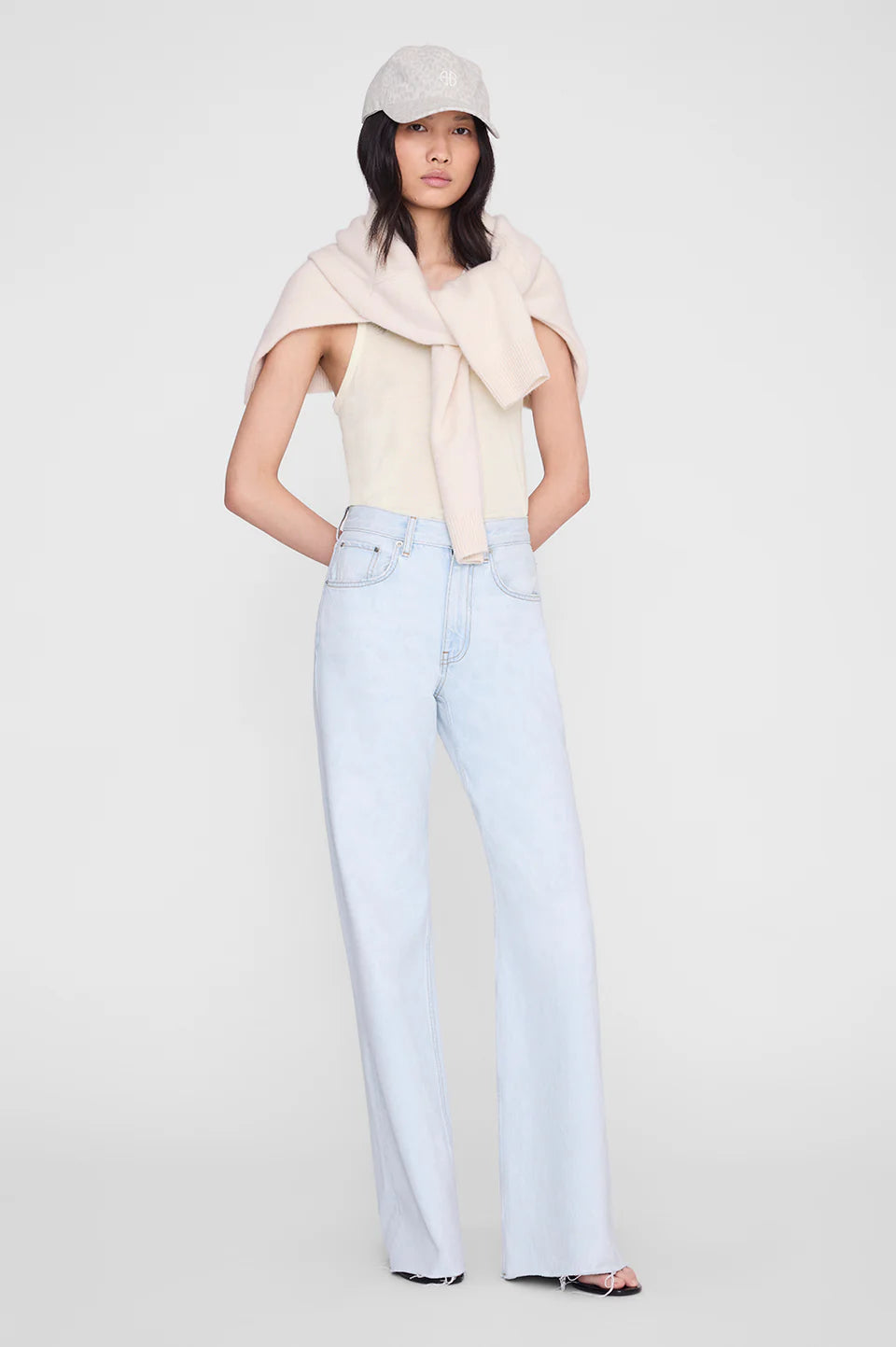 Anine Bing Jeremy Baseball Cap Washed White Leopard