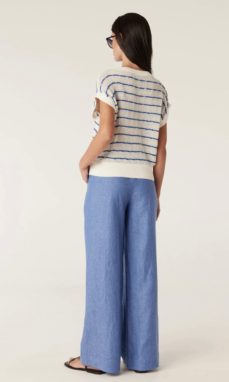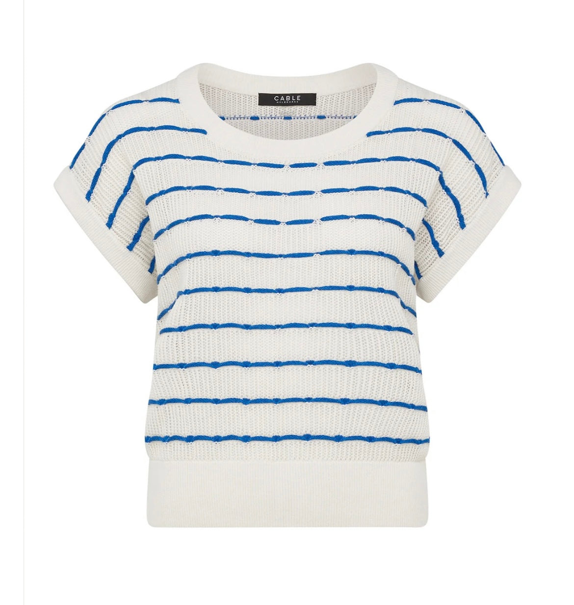 The Coast Knit Top is a regular fit style in a lightweight silk linen blend. Designed with a classic crew neckline and dropped shoulders, it features a contrast wave stitch detail through the body. Rib trims at the neck, armholes and hem complete the look.