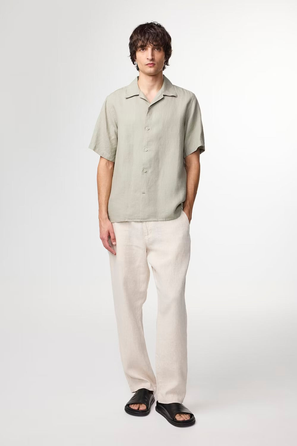 Open collar shirt crafted from premium European linen with a soft handfeel and crispy texture. Features dye-to-match NN.07 buttons and a clean silhouette for a refined summer look.